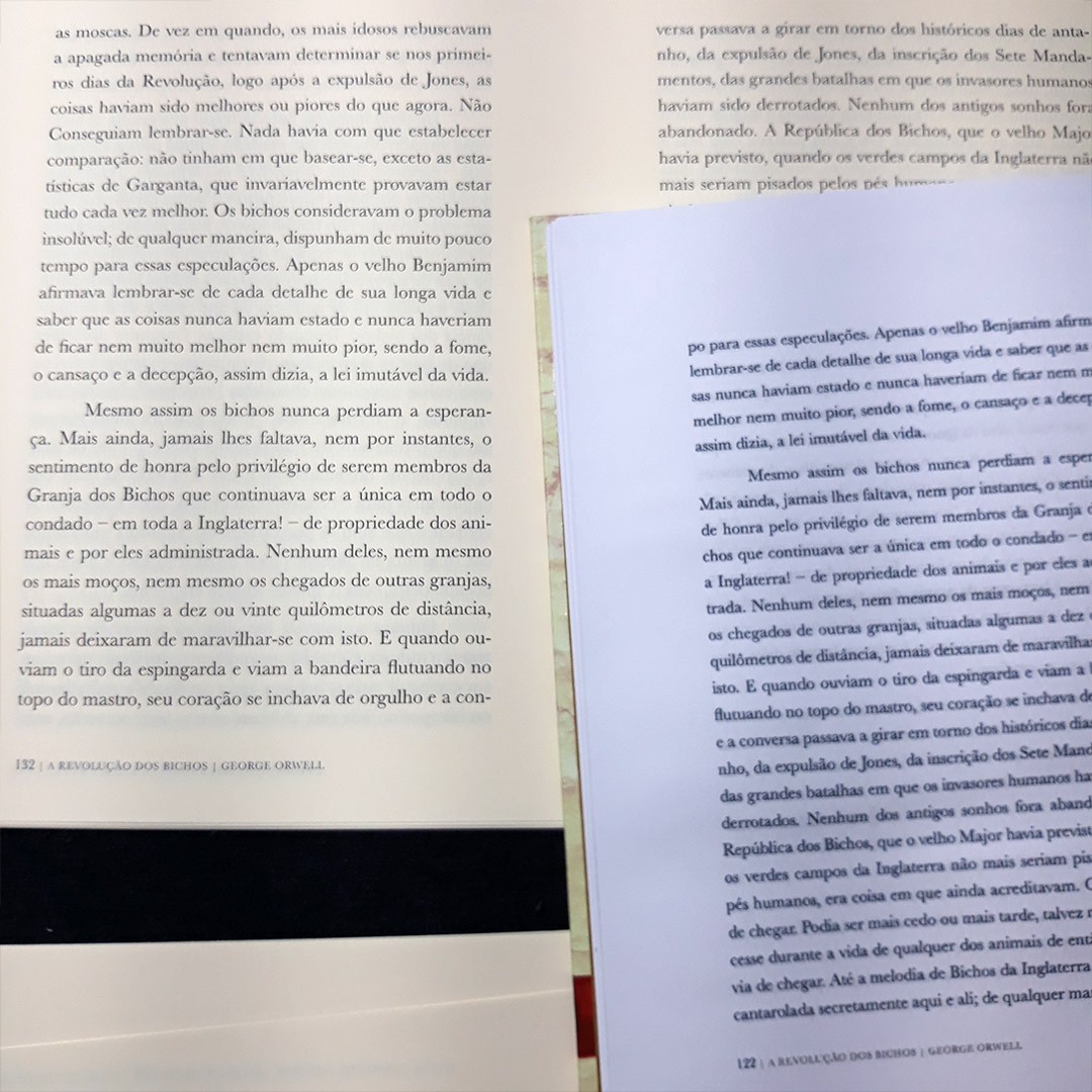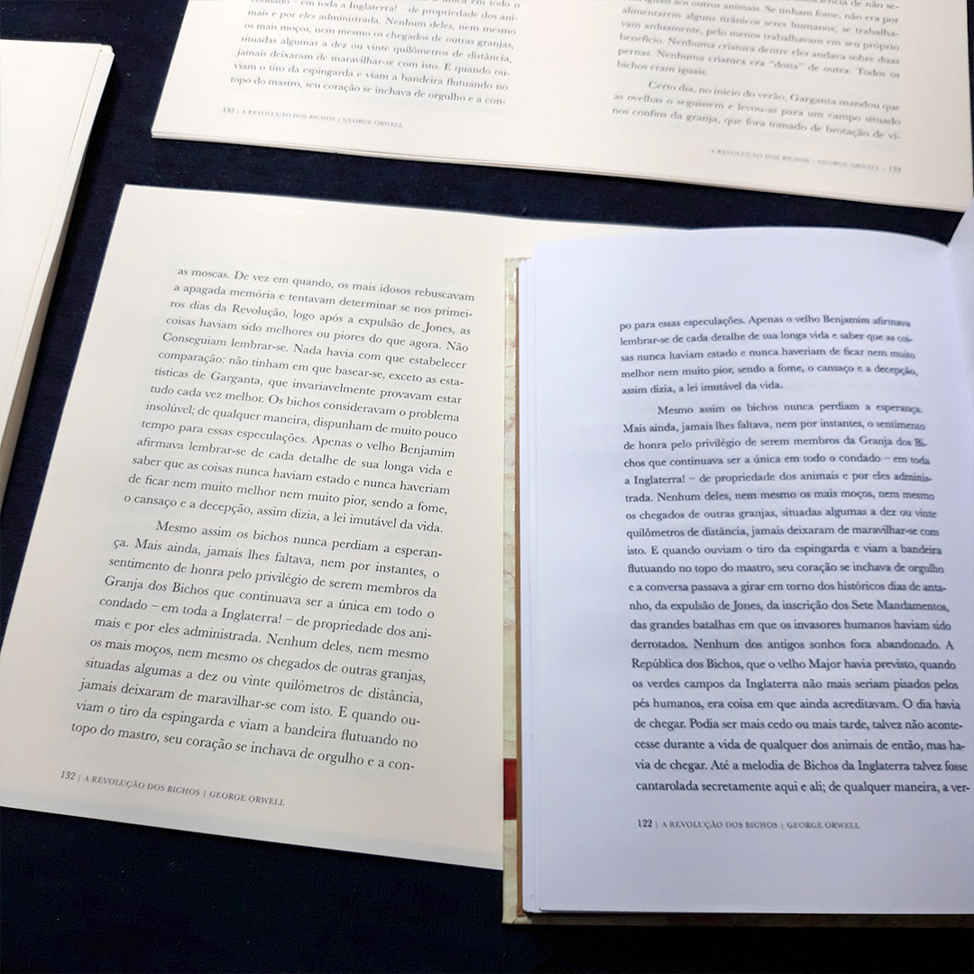 Dobra dos cadernos, folha de rosto e comparação dos miolos agora com nova diagramação e papel marfim